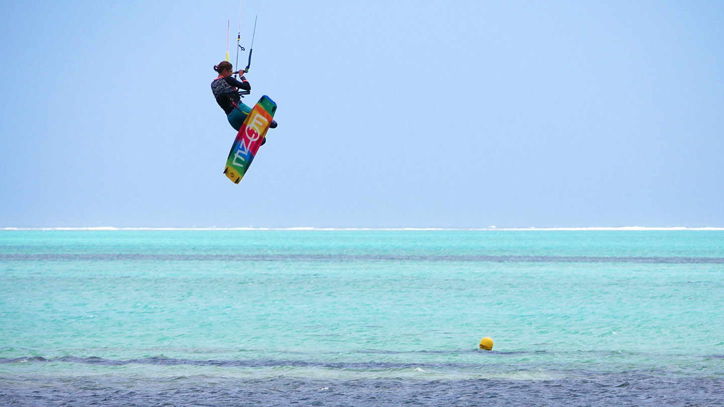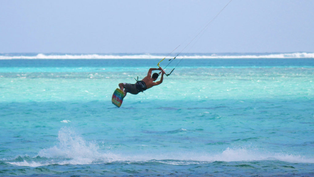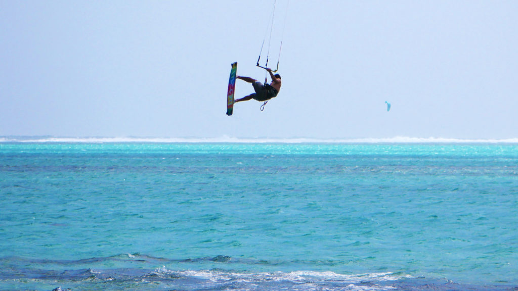 Le vent souffle de façon très régulière pendant la période des alizés et plus fort que ce que nous l’aurions imaginé. On pensait passer notre temps en 12m² mais au final, on a souvent utilisé une taille inférieure. Bref, l’idéal pour le kitesurf.